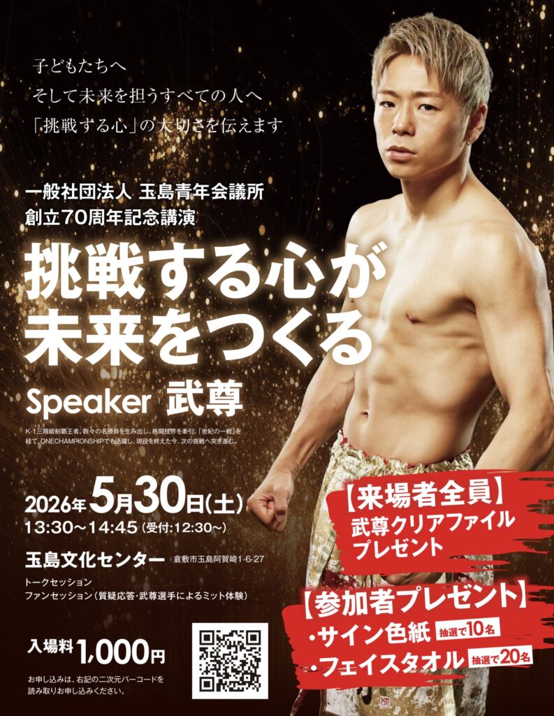 一般社団法人玉島青年会議所創立70周年記念講演「格闘家 武尊 ~挑戦する心が未来をつくる~ 」